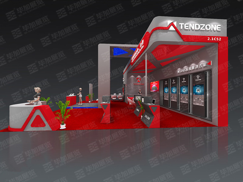 運用灰色和紅色為主調(diào),著重突出品牌和產(chǎn)品的展示,使整個展位大氣高尚又主題鮮明。