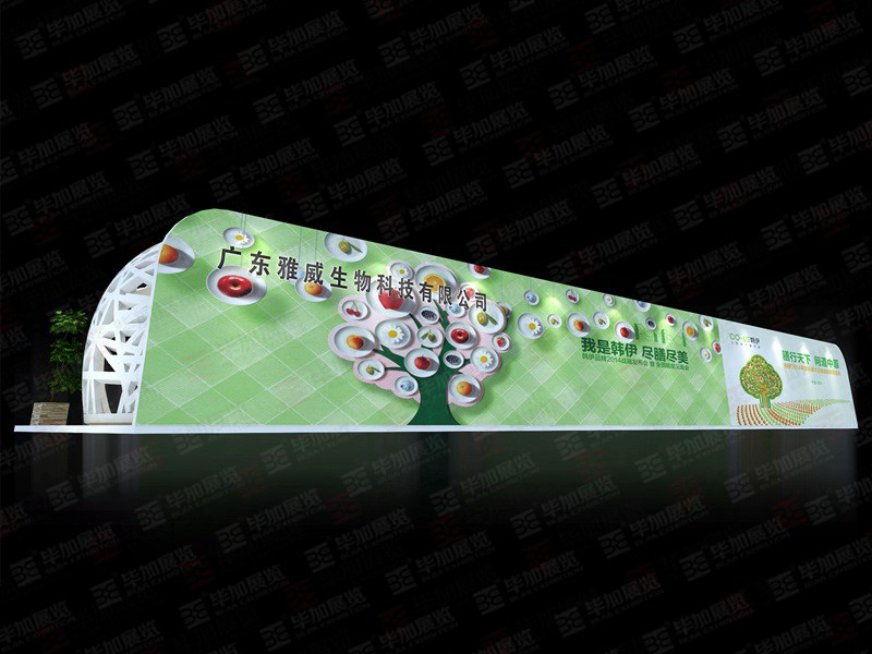 契合雅威品牌形象和產品特性,采用弧形結構,再搭配燈具燈光的效果,襯托出展位科技、超前的氛圍,突出一種高端、創(chuàng)意的時尚品味。